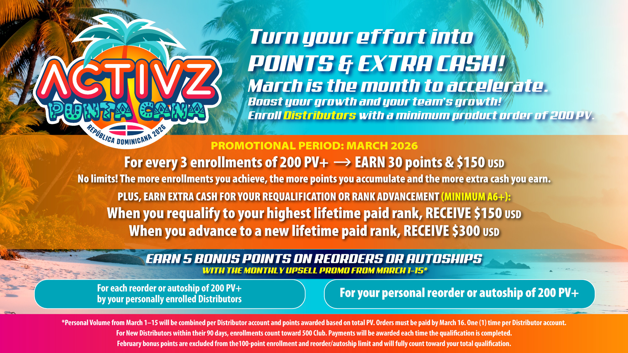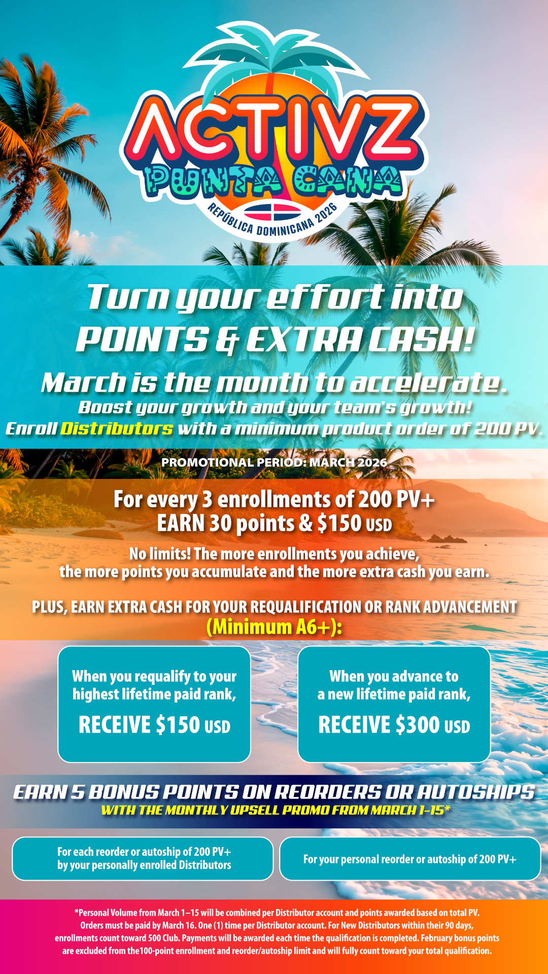 1. Enroll New Distributors or Preferred Customers with a minimum of 100 PV+